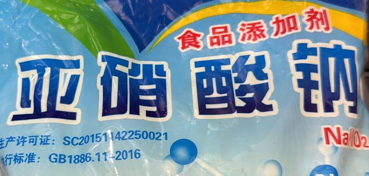 亚硝酸钠作为食品添加剂,不仅可以对鱼类、肉类食品进行染色和保鲜,原理是:亚硝酸盐在酸性条件下分解产生亚硝基,亚硝基会很快与肌红蛋白反应生成稳定、鲜艳、亮红色的亚硝化肌红蛋白,使肉制品保持稳定的鲜艳红色。因此特别适用于午餐肉等。 亚硝酸钠还可以抑制肉毒杆菌的生长。后者可以产生肉毒杆菌毒素,造成食物中毒。在欧盟标准下,亚硝酸钠只能以不高于0.6%的含量与食用盐混合使用。